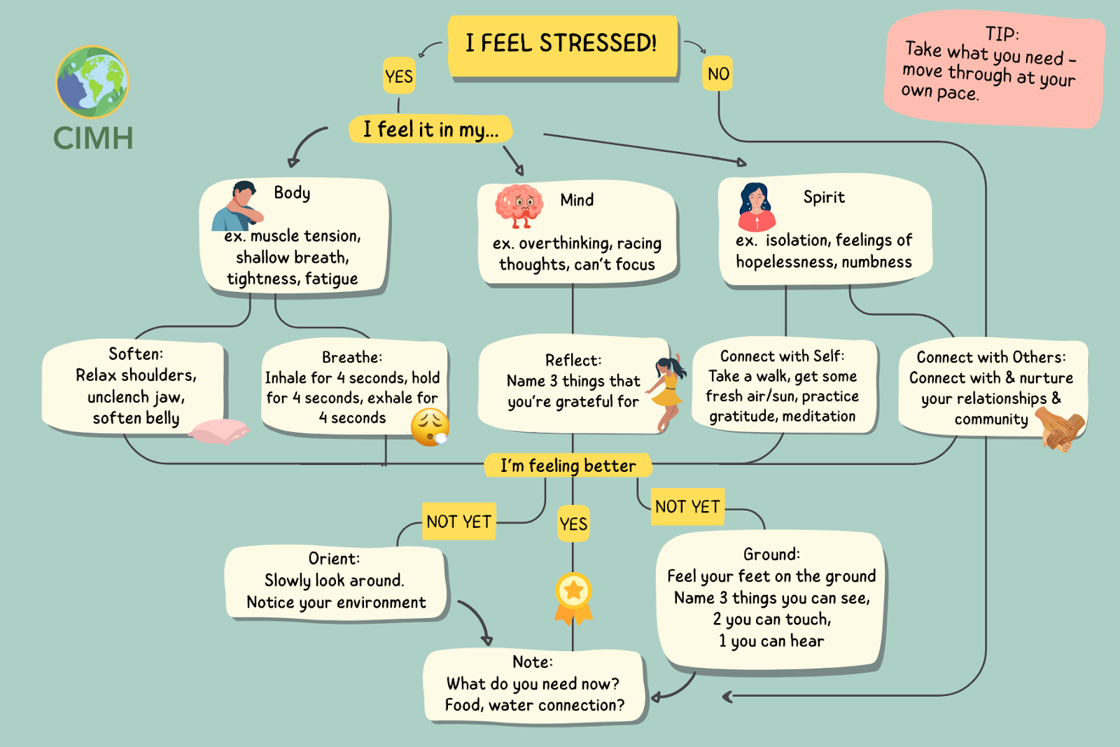 The CIMH Wellness Postcards are physically printed cards created to support individual and collective care during moments of uncertainty, stress and systemic harm. These postcards offer reminders and grounding practices for how we can care for ourselves and one another.
